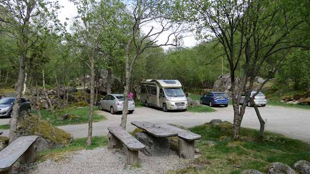 Nå står vi i Hellesylt, på Hellesylt Camping, der vi ankom sent i går ettermiddag: