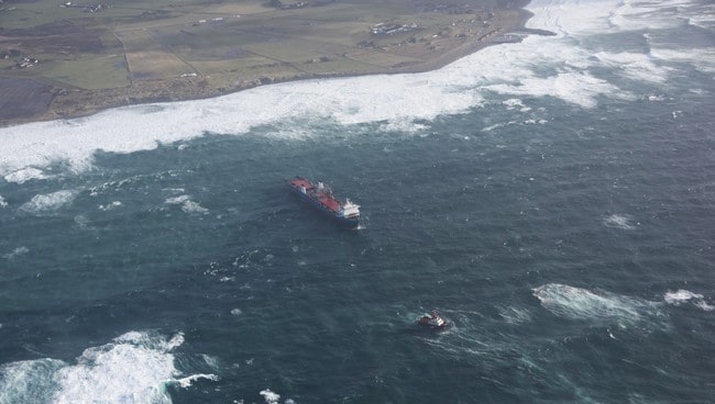 "Tide Carrier" for anker og med taubåtassistanse utenfor Sele. Bilde: Kystverket
