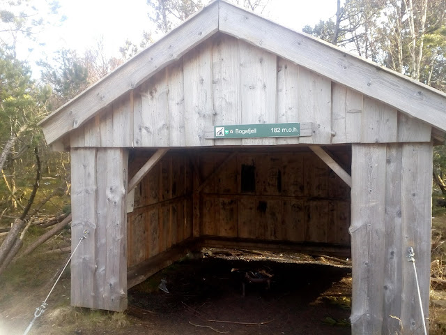 Fra Vagletjørn er veien kort til toppen av Bogafjell der vi finner denne gapahuken med grillplass.